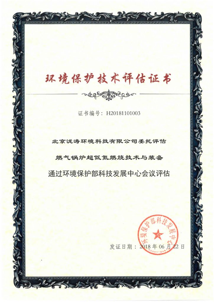 2018年6月22日,生态环境部科技发展中心在北京主持召开了北京泷涛环境科技有限公司自主研发的“燃气锅炉超低氮燃烧技术与装备”技术评估会,评估会由环境部科技发展中心刘尊文副主任主持。清华大学郝吉明院士担任评估专家组组长,原环境保护部科技标准司胥树凡副巡视员、中国环境科学研究院张凡研究员、中国科学院过程工程研究所朱廷钰研究员、北京市劳动保护科学研究所庄德安研究员、北京航空航天大学林宇震教授、生态环境部环境规划院田仁生研究员和国家城市环境污染控制工程技术研究中心彭应登教授级高工共8名专家组成了评估专家组。